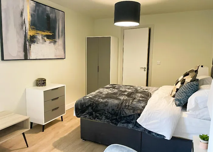 To enjoy your vacation in West Bromwich, stay at The Kaizen Apartment West Bromwich, which is approximately a 25-minute walk from the 17th-century half-timbered Oak House Museum and around 10 minutes by car from Bethel Convention Centre. The apartment offers modern facilities, such as Wi-Fi and essentials like a free private car park for car travellers.